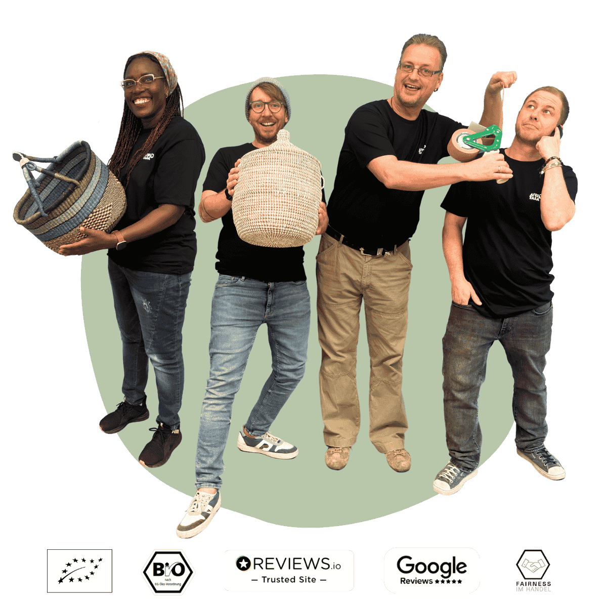 Jambo & Hallo – wir sind Sam, Chris, Jörn und Sascha! Wir feiern und lieben die Vielfalt des afrikanischen Kontinents. Seit 2018 bringen wir als schwäbisches Familienunternehmen Handmade-Schätze aus Afrika direkt zu dir nach Hause. Unsere Produkte sind nicht nur wunderschön, sondern auch nachhaltig und fair gehandelt. Unterstütze unser junges Social-Start-up und entdecke, wie diese einzigartigen Schätze das Leben vieler Menschen positiv verändern. Jede Bestellung wird von uns mit ganz viel Liebe im Afritaba Headquarter in Krumbach verpackt und klimaneutral versendet. Wir freuen uns, gemeinsam mit dir die Welt ein bisschen bunter und besser zu machen!