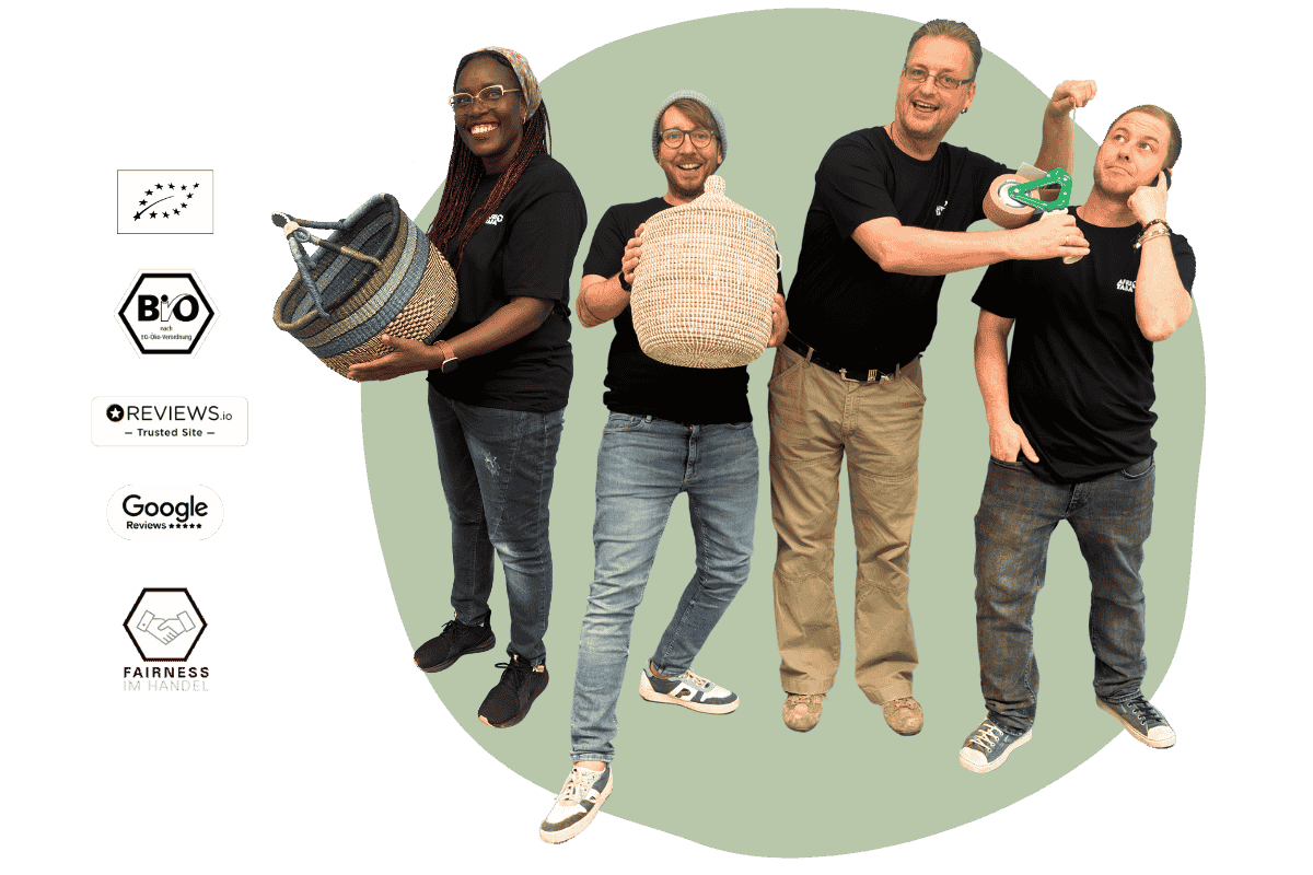 Jambo & Hallo – wir sind Sam, Chris, Jörn und Sascha! Wir feiern und lieben die Vielfalt des afrikanischen Kontinents. Seit 2018 bringen wir als schwäbisches Familienunternehmen Handmade-Schätze aus Afrika direkt zu dir nach Hause. Unsere Produkte sind nicht nur wunderschön, sondern auch nachhaltig und fair gehandelt. Unterstütze unser junges Social-Start-up!