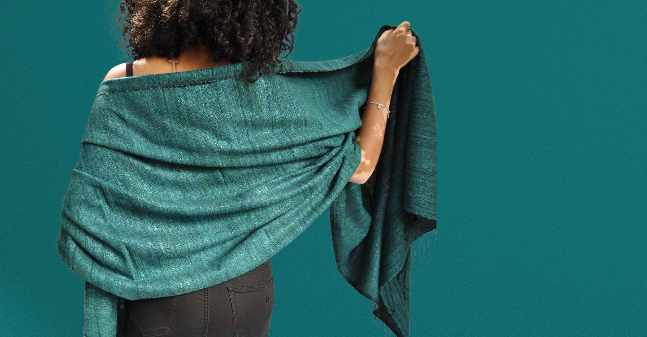 Seidenschals strahlen Eleganz und Luxus aus. Sie fühlen sich super weich an, sind äußerst robust und eignen sich perfekt für jede Temperatur. Die Eri-Seide von Sabahar aus Äthiopien ist besonders tierfreundlich: sie kommt ganz ohne Schädigung der Raupen aus. Diese Seide wird von Hand gesponnen und mit Pigmenten aus Blumen, Kaffee und anderen Pflanzen gefärbt. Einige Schals sind ganz aus Seide, andere mixen Seide mit feinster Baumwolle.