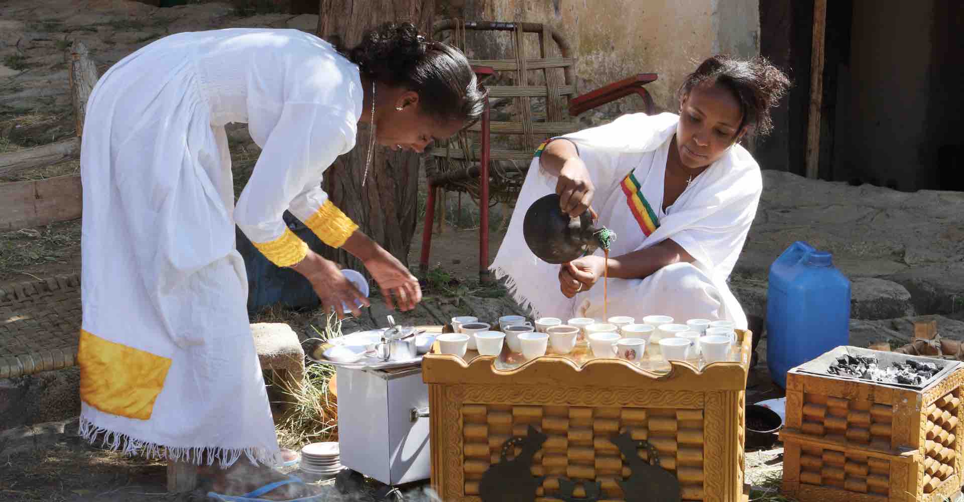 Die äthiopische Kaffeezeremonie ist ein Kernstück der Kultur und vereint die Menschen. Geröstete Bohnen werden vor den Gästen zubereitet und in mehreren Runden mit Popcorn und Gesprächen gereicht. Dieses Ritual steht für Gastfreundschaft und Zusammenhalt und macht Äthiopien weltweit besonders.